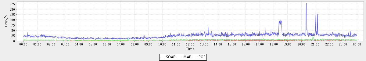 Host zm02.stanford.edu: Mailboxd: Request Rate by Client Protocol