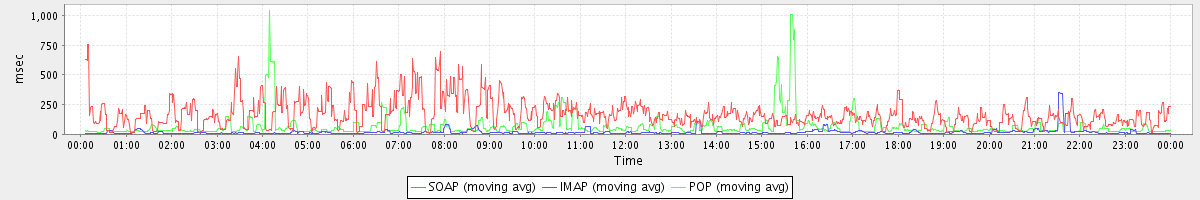 Host zm02.stanford.edu: Mailboxd: Response Time by Client Protocol