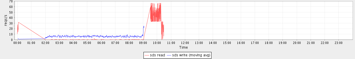 avg(sda read) = 14.99 avg(sda write) = 41.17
