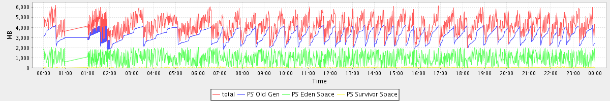 avg(total) = 4172.57 avg(PS Old Gen) = 3180.62 avg(PS Eden Space) = 963.09 avg(PS Survivor Space) = 28.86