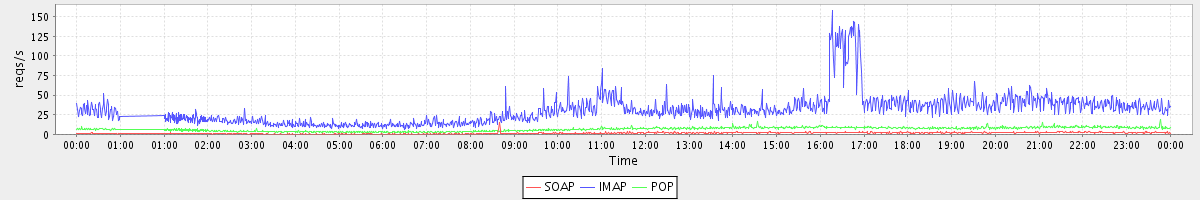 Host zm01.stanford.edu: Mailboxd: Request Rate by Client Protocol
