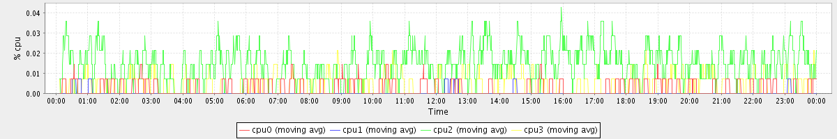 avg(cpu0) = 0.03 avg(cpu1) = 0.04 avg(cpu2) = 0.02 avg(cpu3) = 0.02