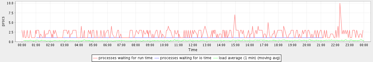 avg(processes waiting for run time) = 0.24 avg(processes waiting for io time) = 0.00 avg(load average (1 min)) = 0.28