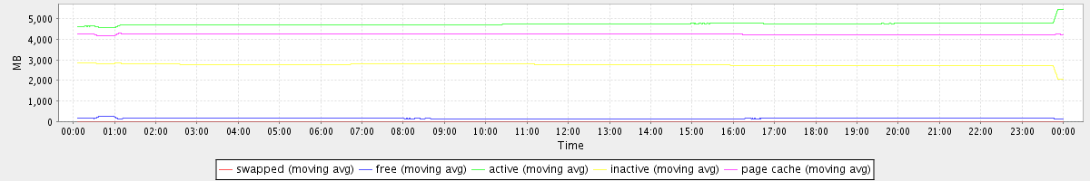 avg(swapped) = 0.20 avg(free) = 154.41 avg(active) = 4743.37 avg(inactive) = 2754.53 avg(page cache) = 4239.77