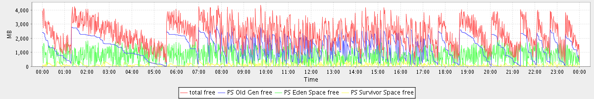 avg(total free) = 2323.71 avg(PS Old Gen free) = 1385.33 avg(PS Eden Space free) = 800.64 avg(PS Survivor Space free) = 137.74