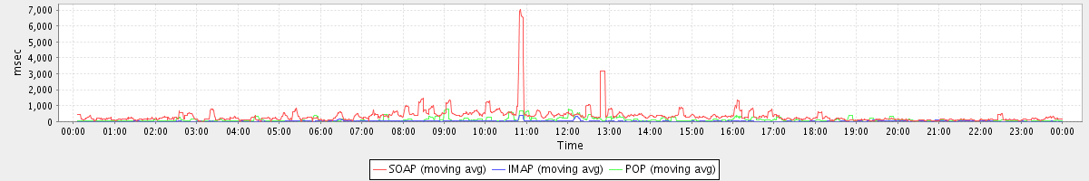 Host zm02.stanford.edu: Mailboxd: Response Time by Client Protocol