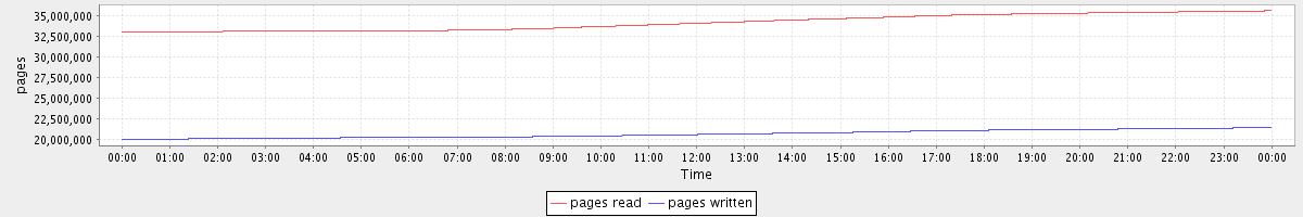 avg(pages read) = 34187287.00 avg(pages written) = 20654754.91