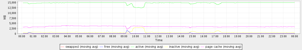 avg(swapped) = 10.49 avg(free) = 93.36 avg(active) = 14731.92 avg(inactive) = 680.50 avg(page cache) = 3398.68