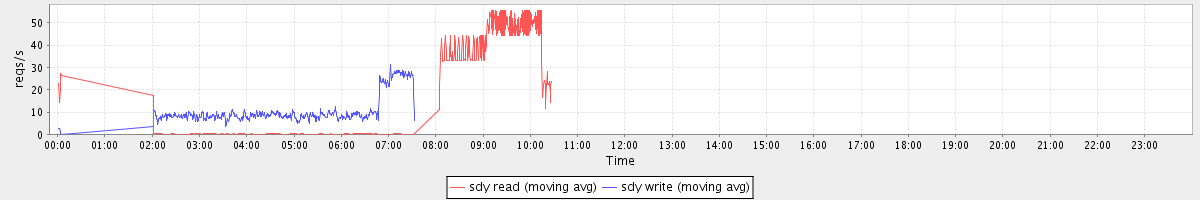 avg(sda read) = 25.10 avg(sda write) = 51.35