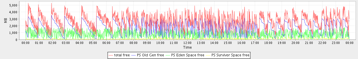 avg(total free) = 2709.44 avg(PS Old Gen free) = 1741.01 avg(PS Eden Space free) = 826.65 avg(PS Survivor Space free) = 141.78