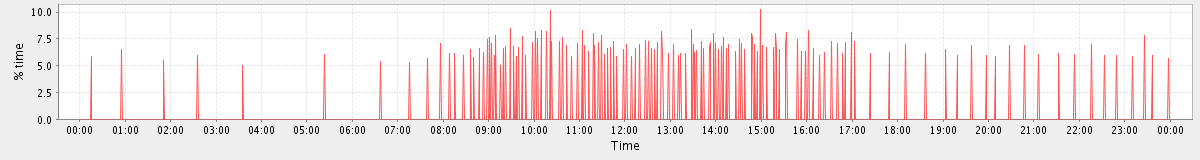 avg(user) = 14.40 avg(sys) = 3.96 avg(idle) = 67.87 avg(iowait) = 12.95 avg(nice) = 0.00 avg(irq) = 0.09 avg(softirq) = 0.74