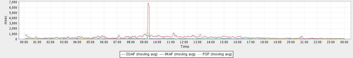 Host zm02.stanford.edu: Mailboxd: Response Time by Client Protocol