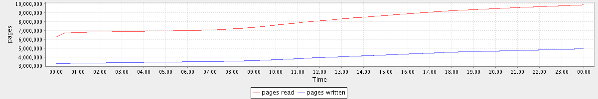 avg(pages read) = 8135157.63 avg(pages written) = 3993744.09