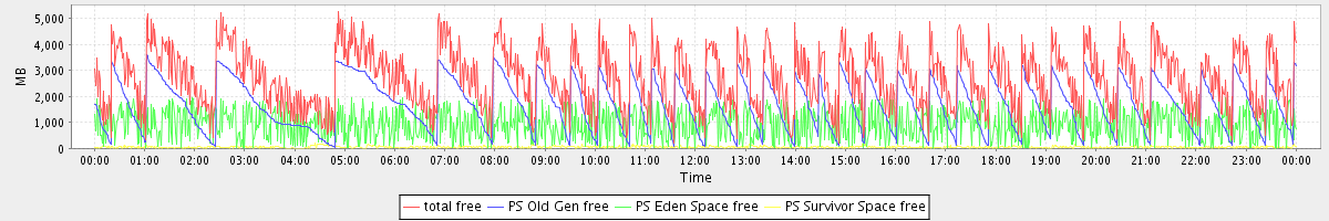 avg(total free) = 2693.52 avg(PS Old Gen free) = 1707.58 avg(PS Eden Space free) = 932.05 avg(PS Survivor Space free) = 53.89