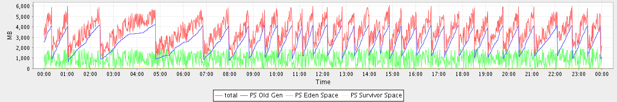 avg(total) = 3588.65 avg(PS Old Gen) = 2564.42 avg(PS Eden Space) = 961.82 avg(PS Survivor Space) = 62.41