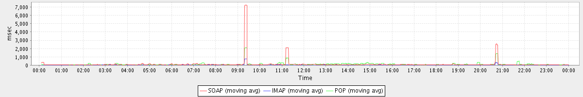 Host zm06.stanford.edu: Mailboxd: Response Time by Client Protocol