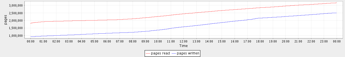 avg(pages read) = 2454670.57 avg(pages written) = 1631669.49