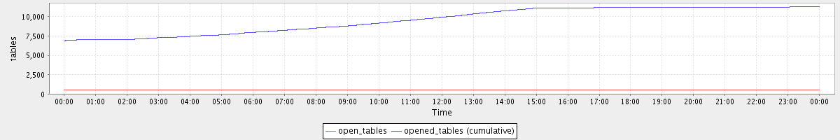 avg(open_tables) = 500.00 avg(opened_tables (cumulative)) = 9555.50
