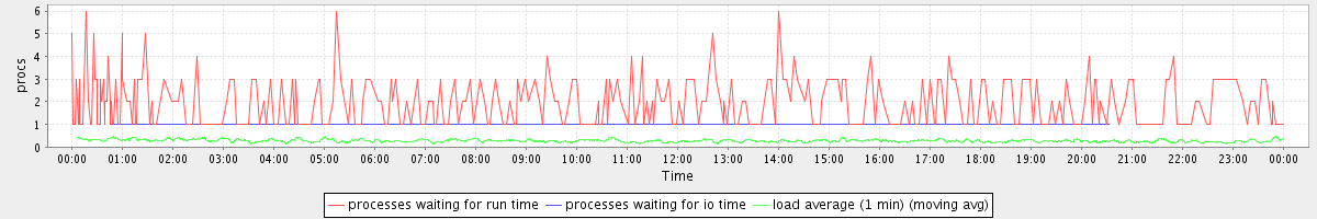 avg(processes waiting for run time) = 0.24 avg(processes waiting for io time) = 0.00 avg(load average (1 min)) = 0.28