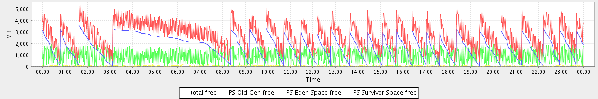 avg(total free) = 2760.57 avg(PS Old Gen free) = 1765.36 avg(PS Eden Space free) = 941.83 avg(PS Survivor Space free) = 53.38