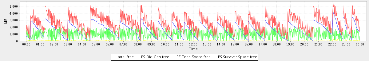 avg(total free) = 2612.09 avg(PS Old Gen free) = 1562.33 avg(PS Eden Space free) = 1010.06 avg(PS Survivor Space free) = 39.70