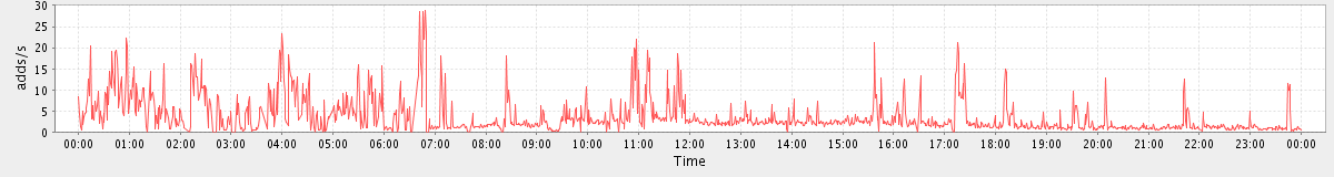 max(SearchRequest) = 92.00 max(MsgActionRequest.delete) = 42.00 max(NoOpRequest) = 45.00 max(GetInfoRequest) = 35.00 max(MsgActionRequest.update) = 146.00 max(AddMsgRequest) = 524.00 max(SearchConvRequest) = 59.00 max(SaveRulesRequest) = 47.00 max(SyncRequest) = 30.00 max(AuthRequest) = 34.00