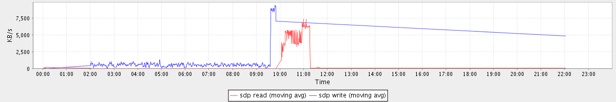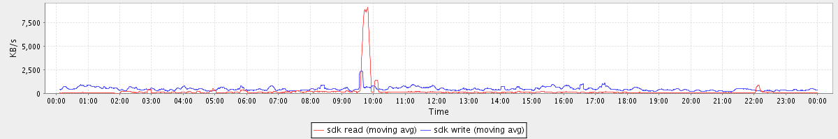 avg(sda read) = 23.58 avg(sda write) = 46.31