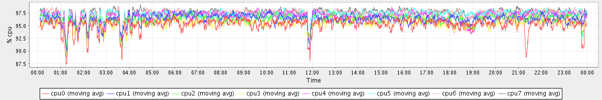 avg(cpu0) = 95.25 avg(cpu1) = 96.35 avg(cpu2) = 96.28 avg(cpu3) = 95.57 avg(cpu4) = 96.77 avg(cpu5) = 97.09 avg(cpu6) = 97.27 avg(cpu7) = 97.42