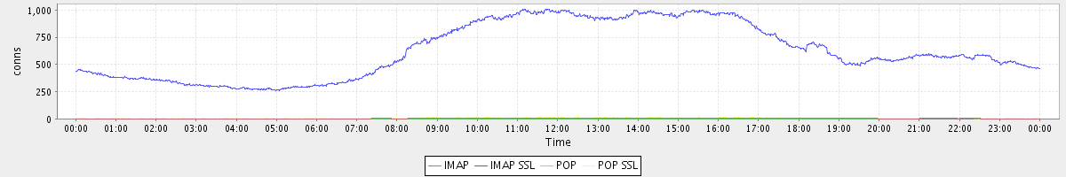 Host zm07.stanford.edu: Mailboxd: Active Connections by Client Protocol