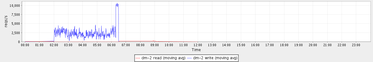 avg(dm-2 read) = 17.35 avg(dm-2 write) = 477.10