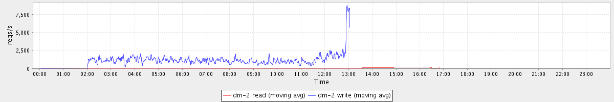avg(dm-2 read) = 21.85 avg(dm-2 write) = 583.71