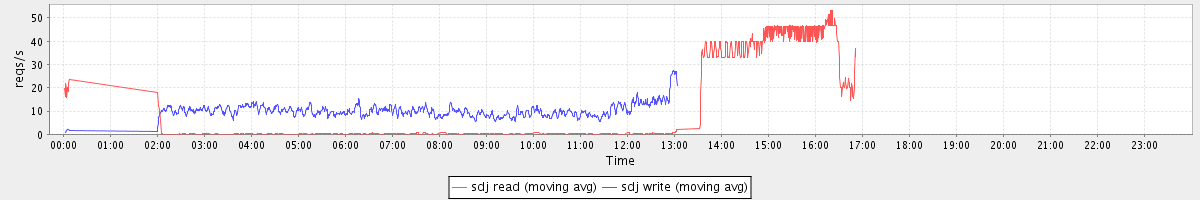 avg(sda read) = 33.34 avg(sda write) = 42.76
