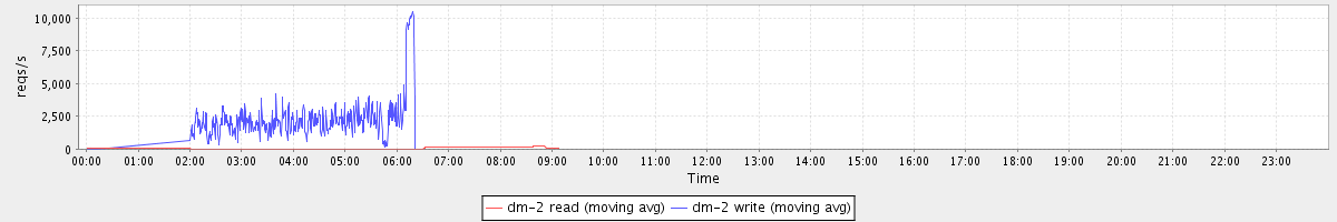 avg(dm-2 read) = 15.86 avg(dm-2 write) = 425.86