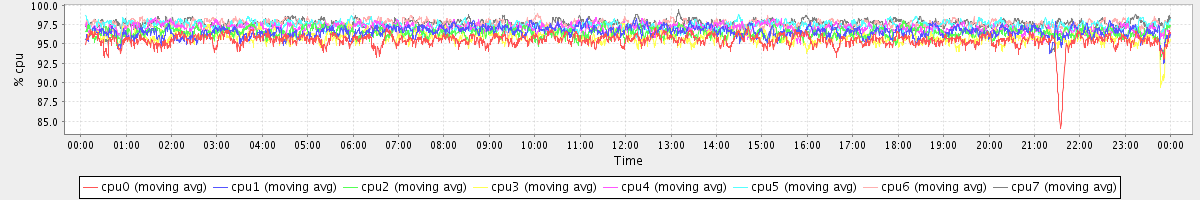avg(cpu0) = 95.48 avg(cpu1) = 96.57 avg(cpu2) = 96.47 avg(cpu3) = 95.86 avg(cpu4) = 97.01 avg(cpu5) = 97.35 avg(cpu6) = 97.52 avg(cpu7) = 97.59