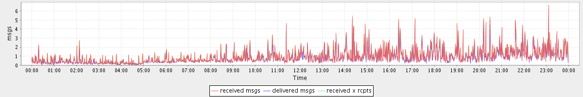 avg(received msgs) = 0.95 avg(delivered msgs) = 0.84 avg(received x rcpts) = 0.95