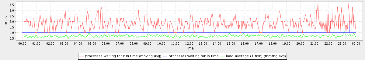 avg(processes waiting for run time) = 0.39 avg(processes waiting for io time) = 0.13 avg(load average (1 min)) = 0.70