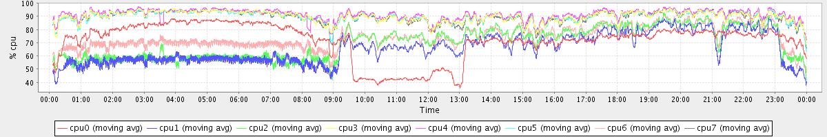 avg(cpu0) = 71.62 avg(cpu1) = 65.74 avg(cpu2) = 69.97 avg(cpu3) = 89.88 avg(cpu4) = 91.33 avg(cpu5) = 89.83 avg(cpu6) = 74.11 avg(cpu7) = 89.53