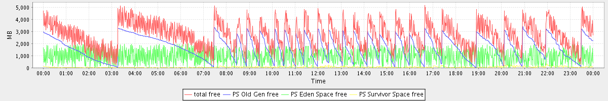 avg(total free) = 2720.37 avg(PS Old Gen free) = 1697.04 avg(PS Eden Space free) = 961.10 avg(PS Survivor Space free) = 62.23