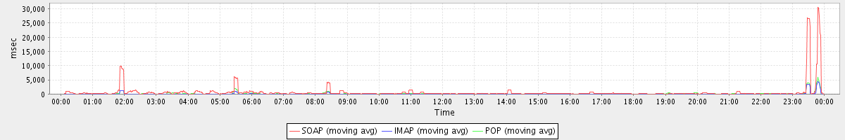 Host zm08.stanford.edu: Mailboxd: Response Time by Client Protocol