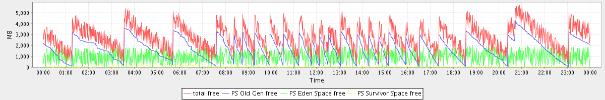 avg(total free) = 2740.82 avg(PS Old Gen free) = 1711.99 avg(PS Eden Space free) = 965.68 avg(PS Survivor Space free) = 63.15