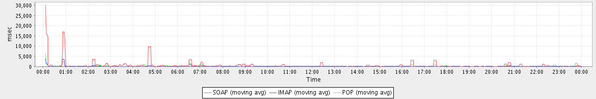 Host zm08.stanford.edu: Mailboxd: Response Time by Client Protocol