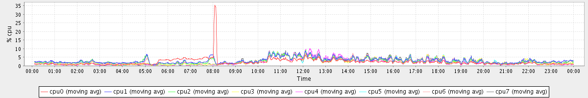 avg(cpu0) = 1.09 avg(cpu1) = 0.30 avg(cpu2) = 0.26 avg(cpu3) = 0.14 avg(cpu4) = 0.13 avg(cpu5) = 0.12 avg(cpu6) = 0.22 avg(cpu7) = 0.12