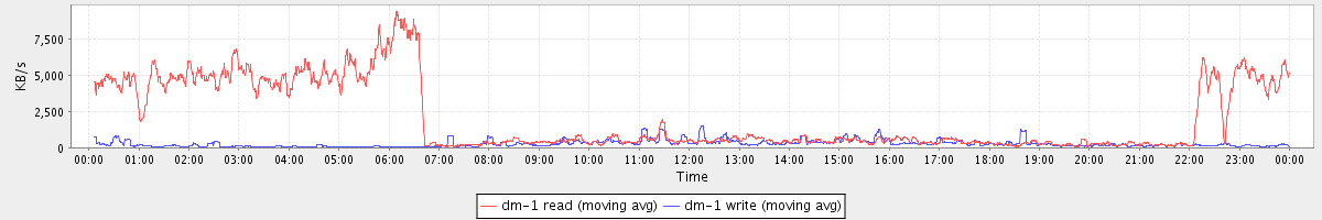 avg(dm-1 read) = 2085.95 avg(dm-1 write) = 278.84