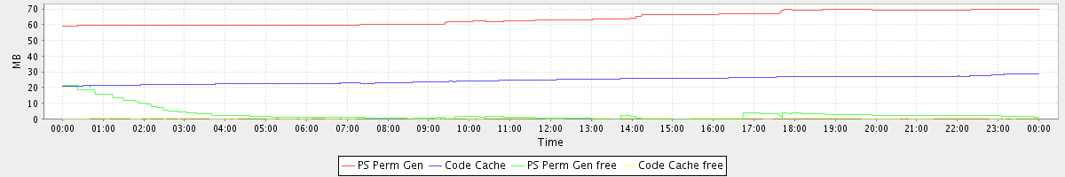 avg(PS Perm Gen) = 63.94 avg(Code Cache) = 24.66 avg(PS Perm Gen free) = 2.90 avg(Code Cache free) = 0.23
