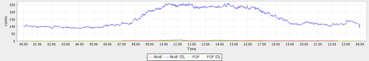 avg(IMAP) = 1.33 avg(IMAP SSL) = 158.93 avg(POP) = 0.02 avg(POP SSL) = 1.76
