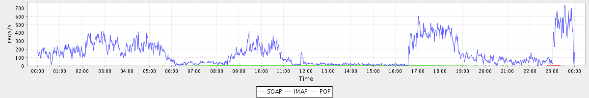 Host zm05.stanford.edu: Mailboxd: Request Rate by Client Protocol