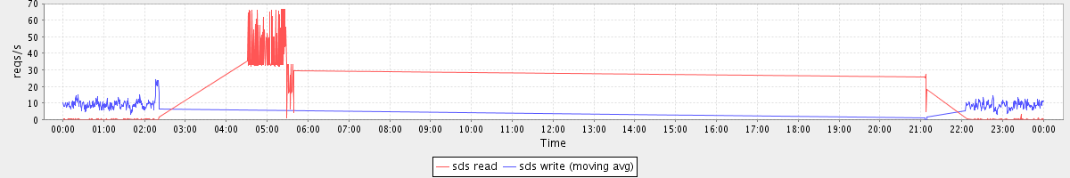 avg(sda read) = 21.73 avg(sda write) = 52.05