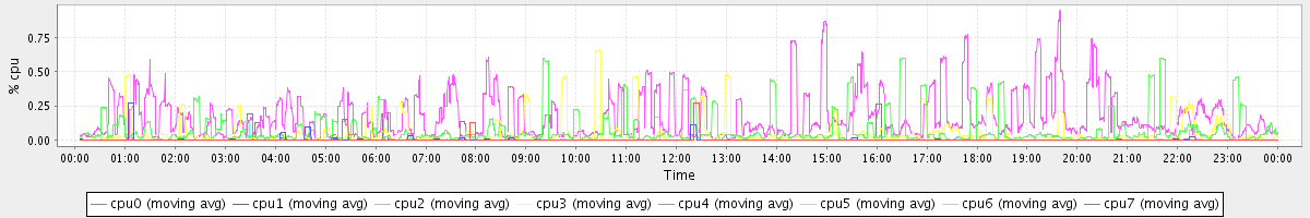 avg(cpu0) = 0.39 avg(cpu1) = 0.27 avg(cpu2) = 0.21 avg(cpu3) = 0.26 avg(cpu4) = 0.20 avg(cpu5) = 0.13 avg(cpu6) = 0.12 avg(cpu7) = 0.11