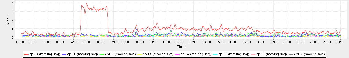avg(cpu0) = 0.08 avg(cpu1) = 0.06 avg(cpu2) = 0.05 avg(cpu3) = 0.00 avg(cpu4) = 0.00 avg(cpu5) = 0.00 avg(cpu6) = 0.04 avg(cpu7) = 0.00
