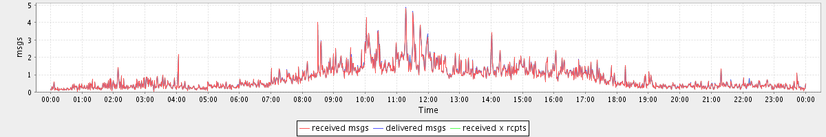 avg(received msgs) = 0.81 avg(delivered msgs) = 0.82 avg(received x rcpts) = 0.82